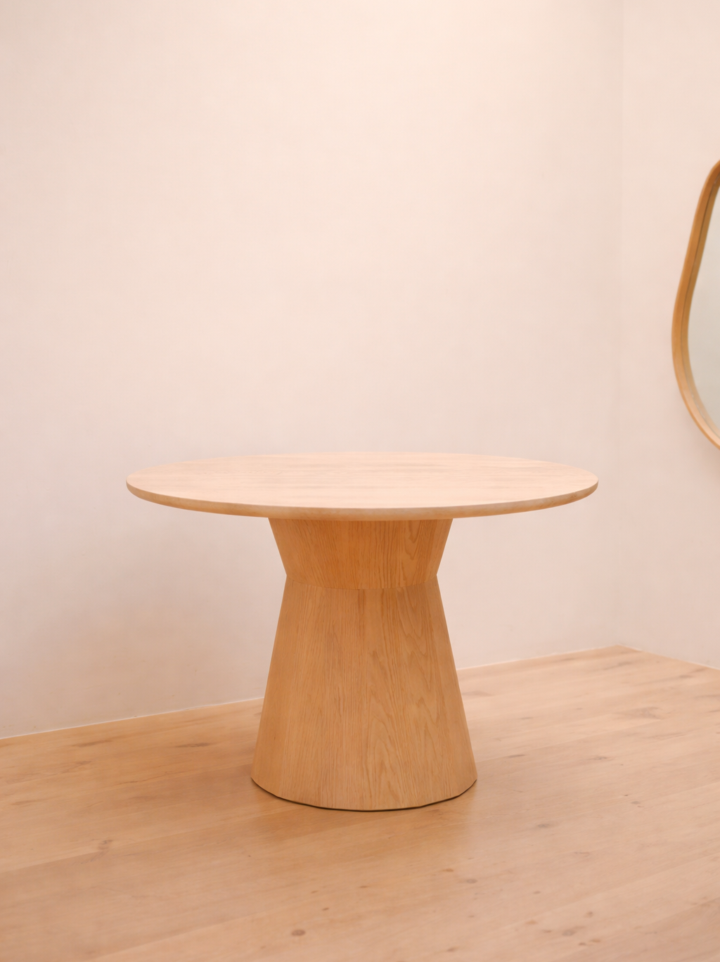 An original Stahl + Band designed dining table. Featuring a multi-faceted pedestal base with a solid Stone Top.