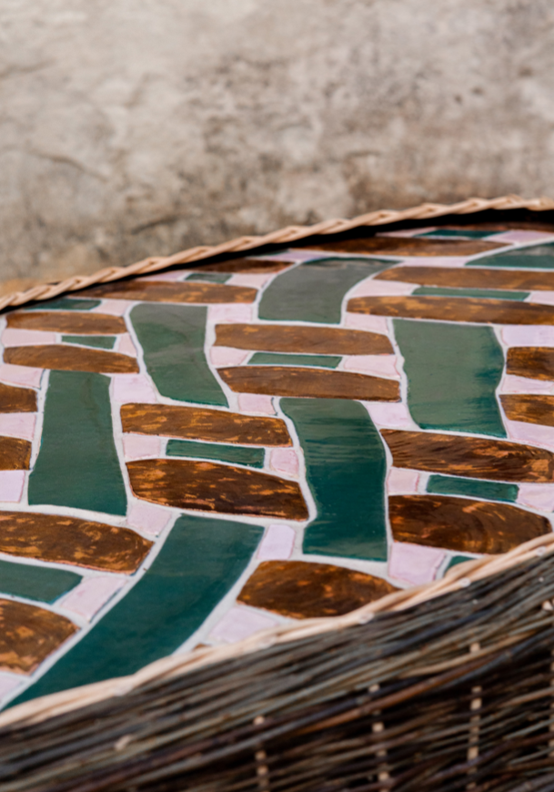 Calisson 001 – glazed stoneware and wicker work. Designed by Pia Chevalier and Victorine Soulard.