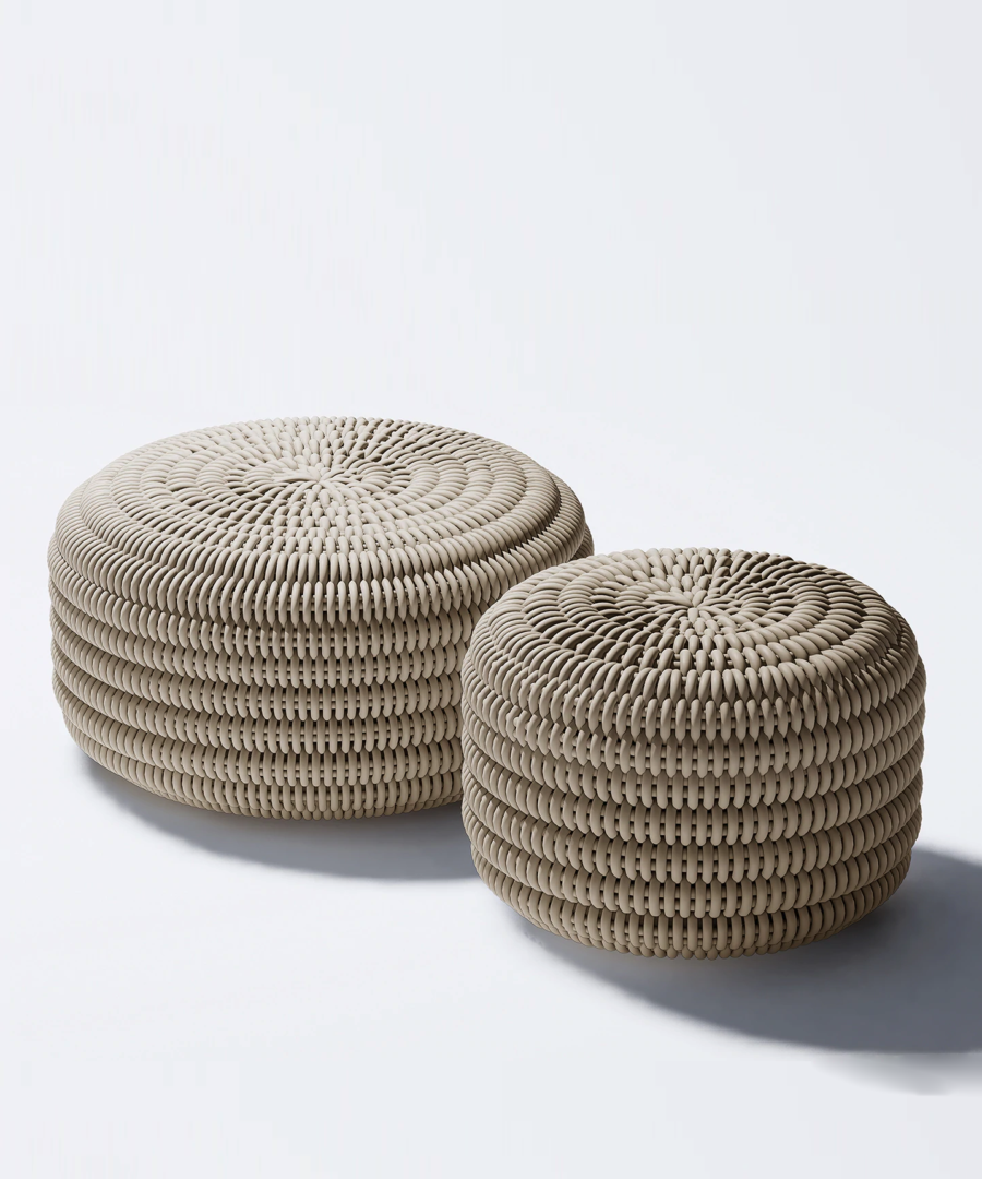 Monochrome Ottoman by SHORE. Made from waterproof silicone textile, marine-grade foam.